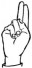 На ћирилици написано МИЛОМИРКА ЛАЧНЕВАЦ састоји се из 17 слова [?]. Исписано ћириличном једноручном азбуком за глувонеме: